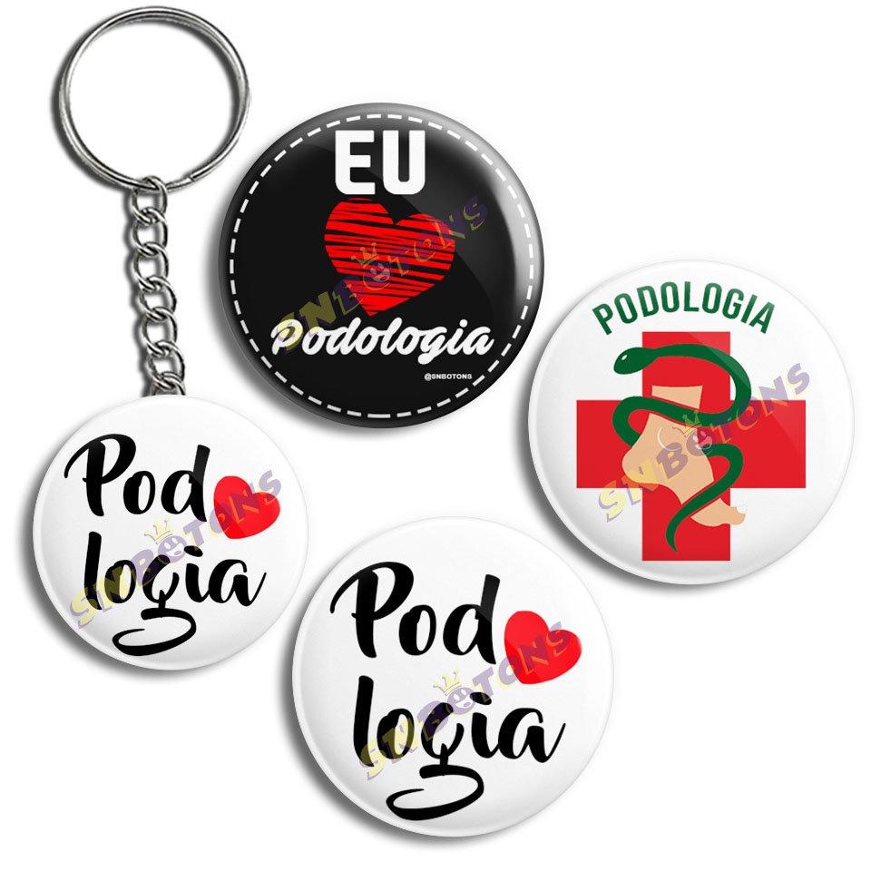 Kit Bottons + Chaveiro Profissão Podologia