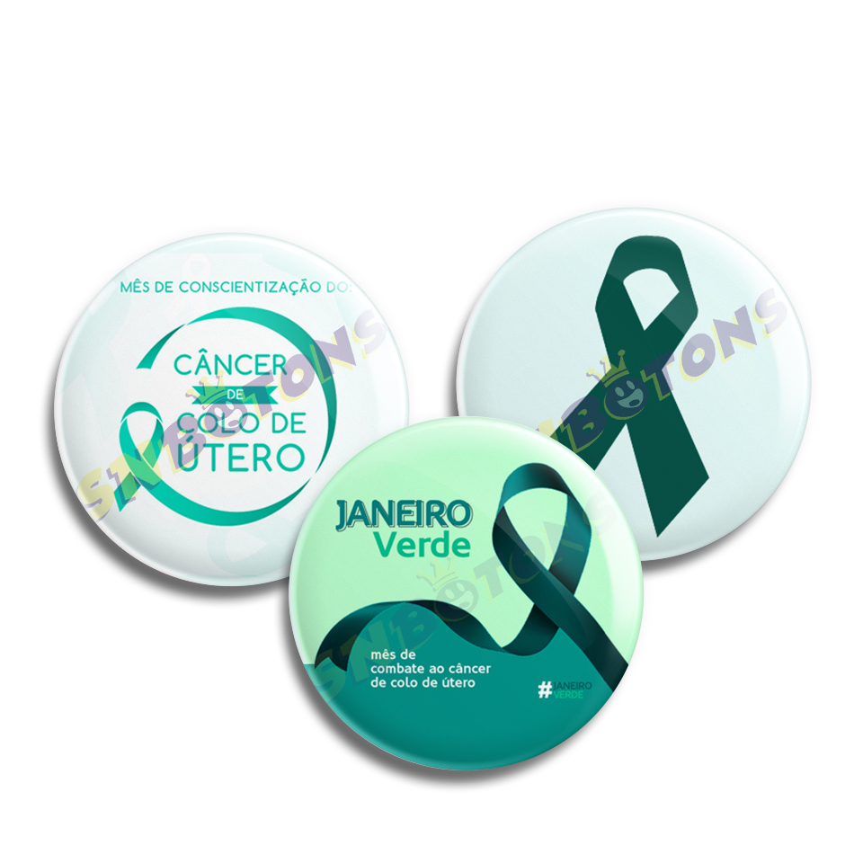Botons Personalizados Campanha Conscientização Câncer do Colo do Útero Janeiro Verde