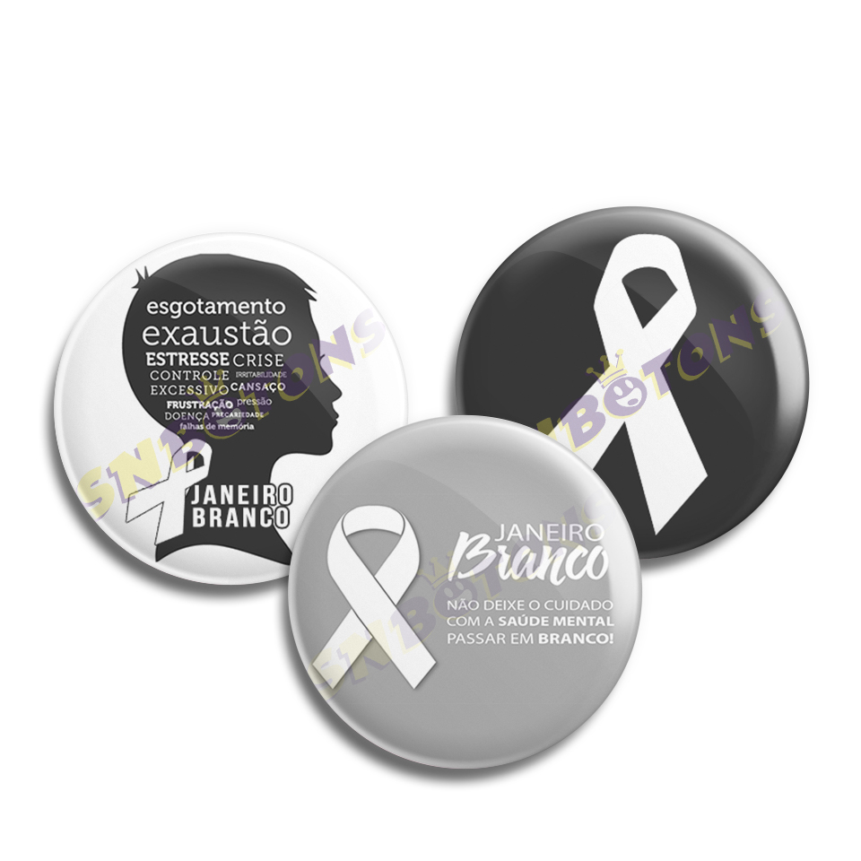 Boton Bottons Janeiro Branco Saúde Mental 4,5 CM